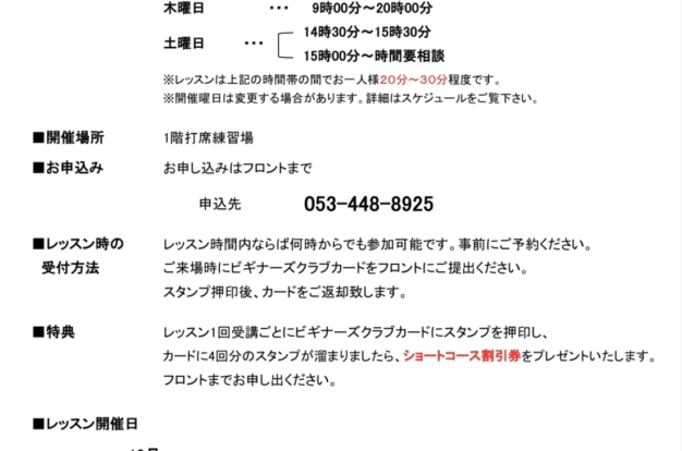 ご入会頂くと1年を目途に無料レッスンや打席練習場、