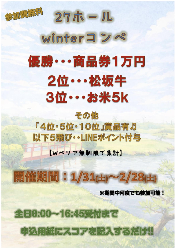 冬の27ホールイベントを開催いたします😊